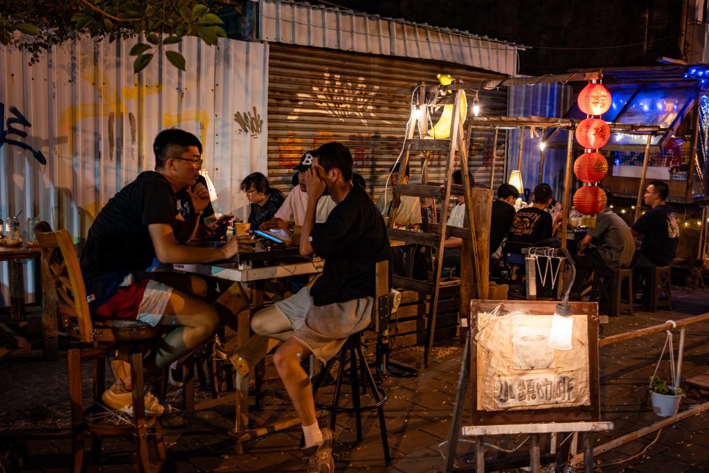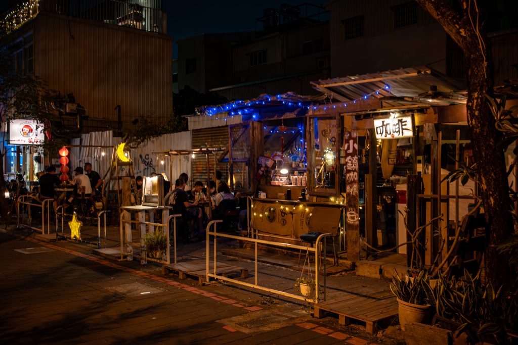 鄰近下午時赤崁東街上會變得十分熱鬧,這附近有島入冰店、岬角居酒屋、李媽媽民族鍋燒老店、明治町冰淇淋 – 宮原眼科台南限定…等,許多值得一來的店﹐但只要夜幕降下,《小鎮咖啡》馬上變成這條街上的焦點。