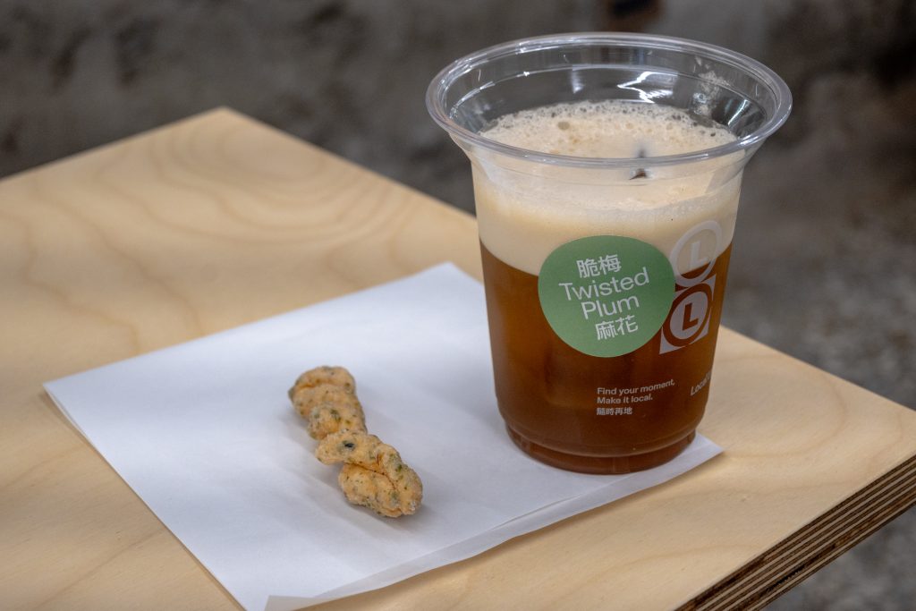 《脆梅麻花 Twisted Plum》將芭樂予以咖啡獨特的奶油堅果風味融合,將口味層次提升,在入口時碰撞出無限的想像與趣味。最後用海苔麻花捲的酥脆口感交替,搭配著調飲,玩意十足。