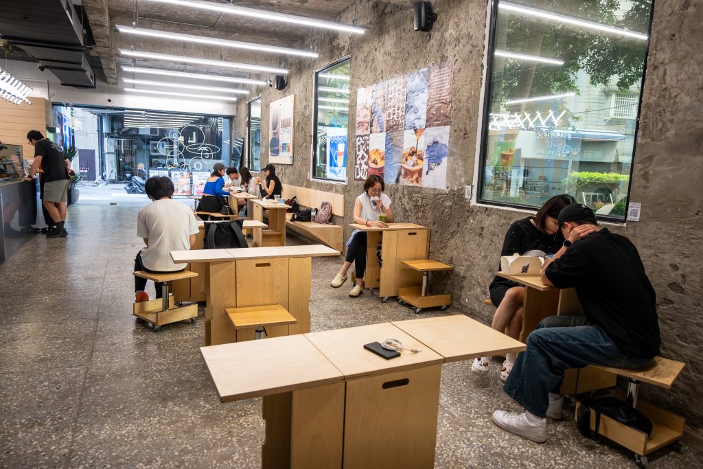 《Local Local Coffee 咖啡再地》還有一大亮點,就是由工業設計師周信宏打造的全訂製傢俱,家具體系的建立成就了空間的可流動性,透過模組化的桌椅設計,給予人與人的互動「邏輯」。