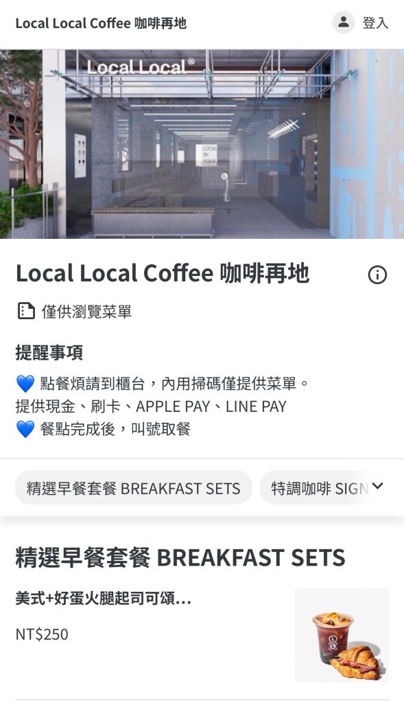 掃描下圖的QR code即可看到《Local Local Coffee 咖啡再地》的菜單,分為六個大類: