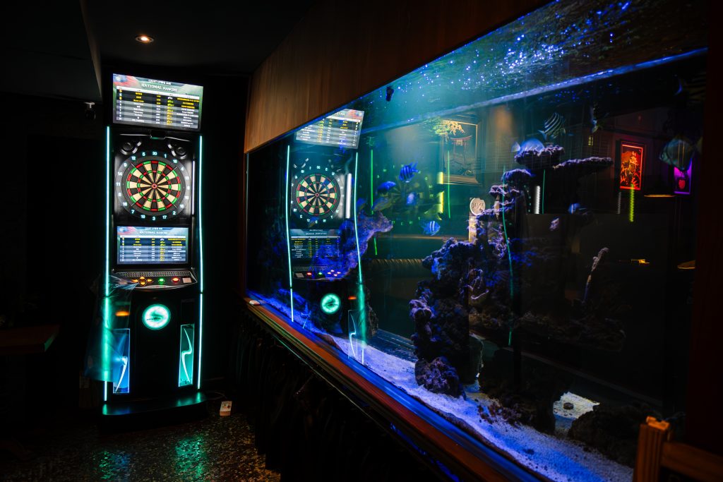 貼心提醒:旁邊的飛鏢是用射靶的,請不要拿來當魚鏢使用…