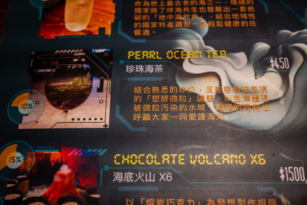 翻開海洋系調酒單,著實讓胡哥我嚇了一跳,酒單設計不是在講述人魚公主般,浪漫、淒涼、讓人動情的故事,反而暗藏著不少環境議題,如塑膠微粒、淨灘、河川優養化等,如同醉後的我們,口中吐露出的往往都是血淋淋的真人真事。