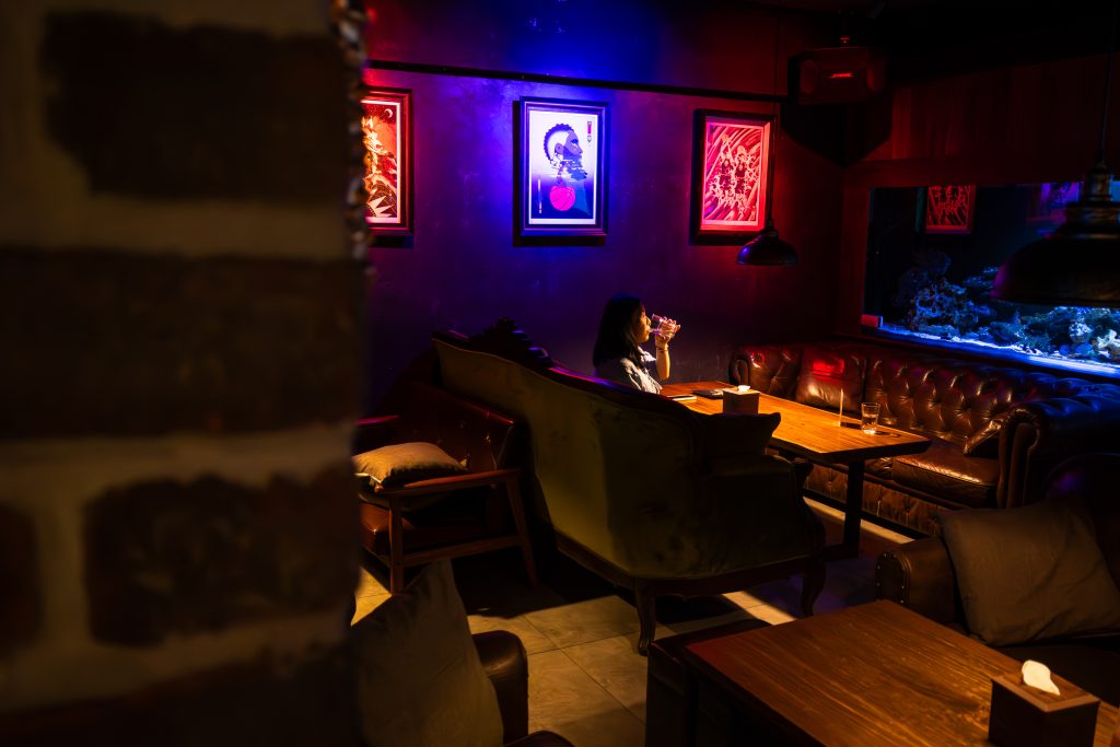 藍色神秘的水族光芒與低調沉穩的地窖紅磚彼此呼應,那怕沒有酒精助興,也能讓人放開心,展露出那不過度偽裝的自己。