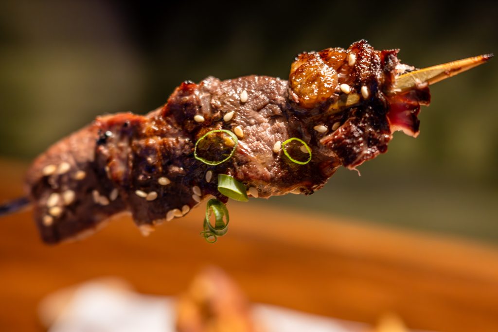 同樣的沙朗牛,這一盤熟度就控制得很完美,濃郁的起司在口中引爆,跟胡哥我同行的友人,完全被這牛B串燒征服了。