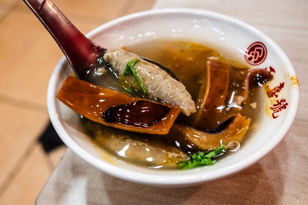 別小看小碗的魷魚羹,料可是多到快滿出來,勾芡後的高湯將食材緊緊包覆著,每一口都是實在與甜蜜的雙重享受,建議先淺嚐原味之後,再加入一點烏醋試看看,你會發現層次變得更豐富了。