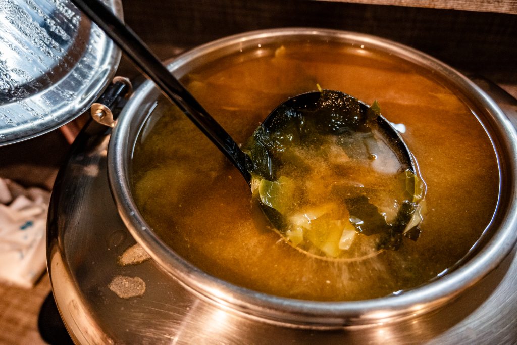 胡哥我很愛大盛豬排的味噌湯,沒有白豆腐,卻有滿滿的蔬菜、海帶,喝起來偏清爽帶點微微的顆粒感。