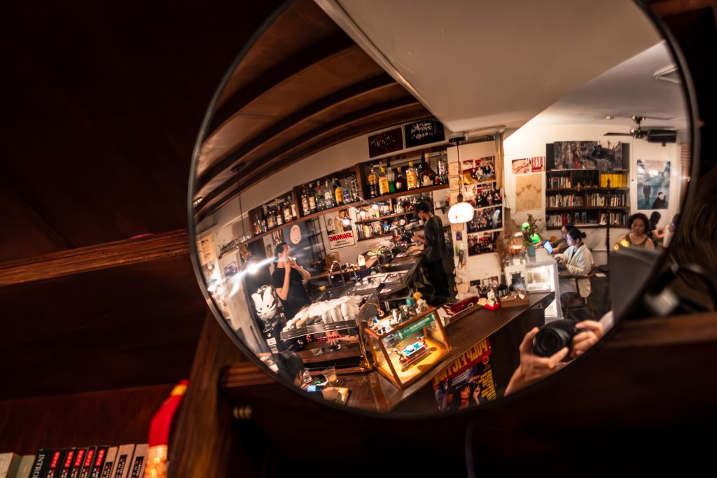 未央咖啡店是一間非常注重隱私的咖啡廳,所以胡哥我只能透過後照鏡拍全景給大家看,可以看見夜雖已深,但人潮絲毫不減。