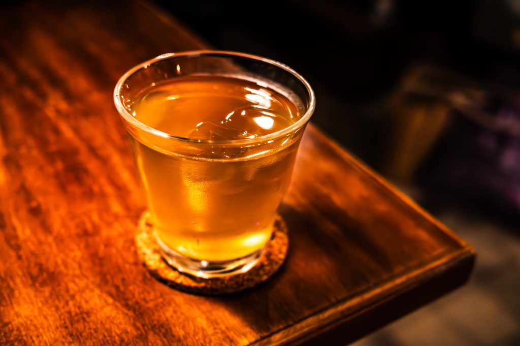入內之後,會看見一個巨型中島式環狀吧檯,材質選用柚木實木,配上黃銅修飾,營造出店家與客人間良好的互動氛圍,調飲、餐點的製作流程公開、透明。