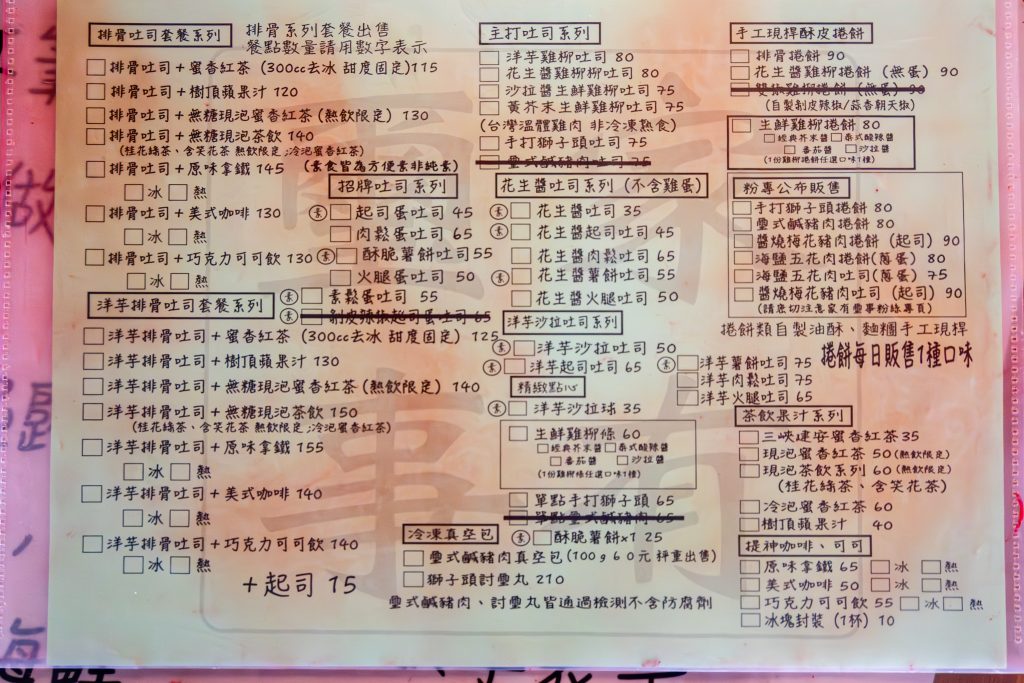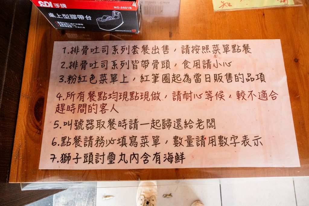 1.採劃單方式點餐,粉紅色菜單上,紅筆圈起來為當天販售的品項。