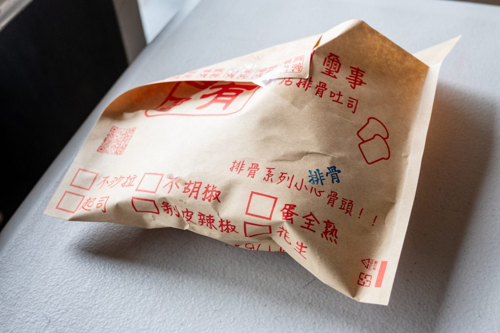 排骨吐司裝在油紙袋裡面,不單看起來質感滿分,拿起來也沒有濕濕的感覺。