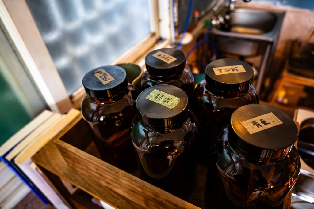 咖啡豆們很細心的裝在深色玻璃罐內,避免被陽光過度照射而變質。