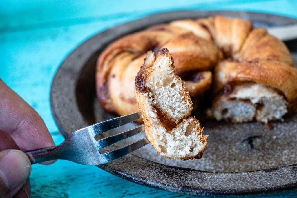 由於荳蔻、肉桂的緣故,吃下去肚子感覺軟呼呼的很舒服,外皮微酥脆,麵包體稍微偏乾,建議搭配茶飲一同享用。