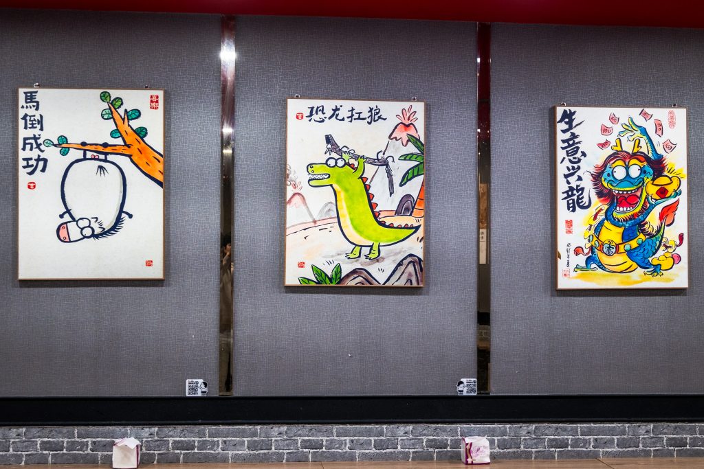 頭頂上掛有許多童趣吊燈,牆面上也有生動活潑的作品,讓整體多了些生動的色彩。