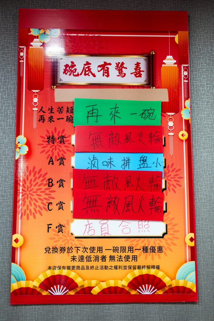 想體驗「無限風火輪」的朋友,只需將碗底印有「特賞、B賞、C賞」的碗交給店員,即可體驗。