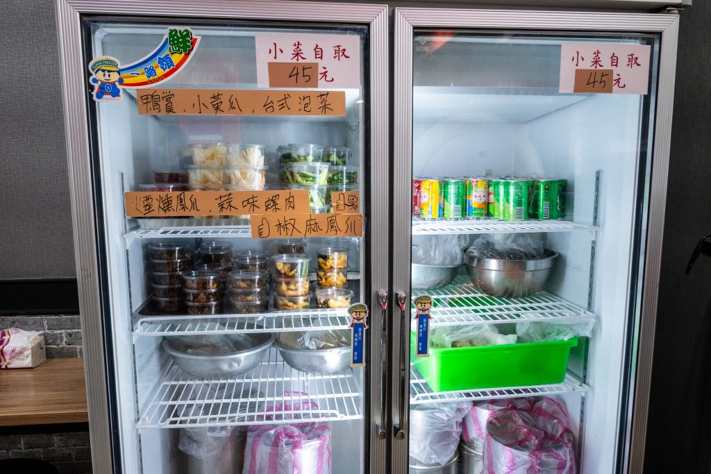 營業用冰箱內有順興集團牛肉麵專賣店特製的小菜,想吃的朋友可自行拿取,並於結帳時一同付款。