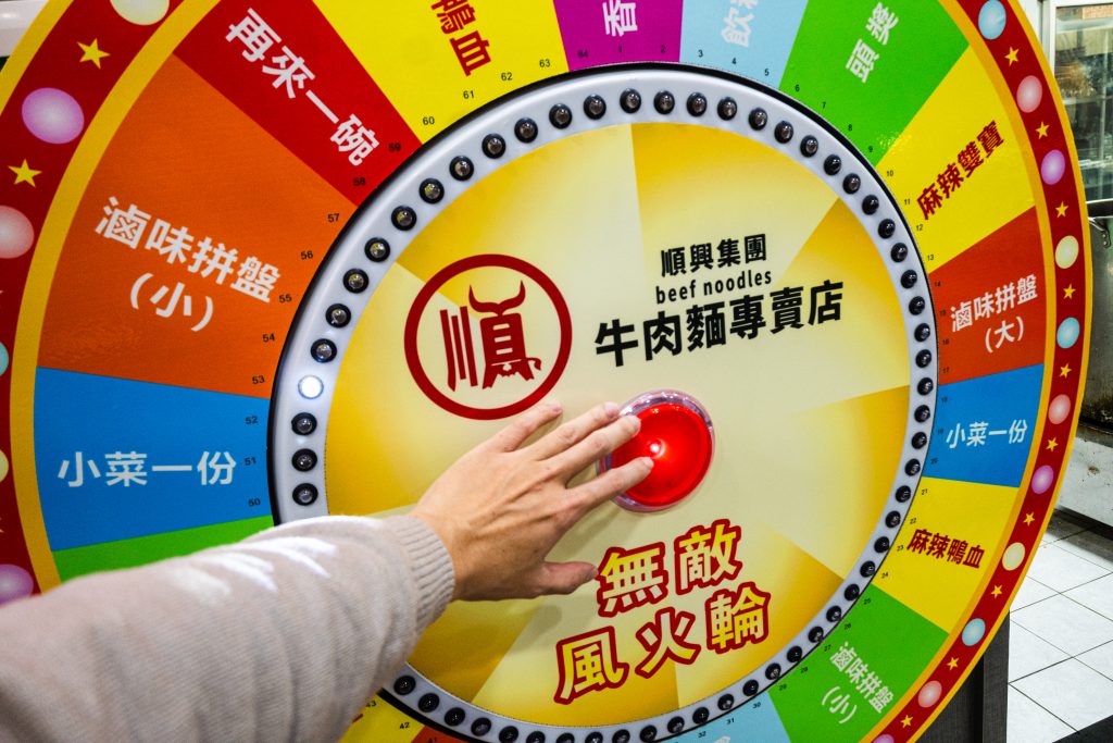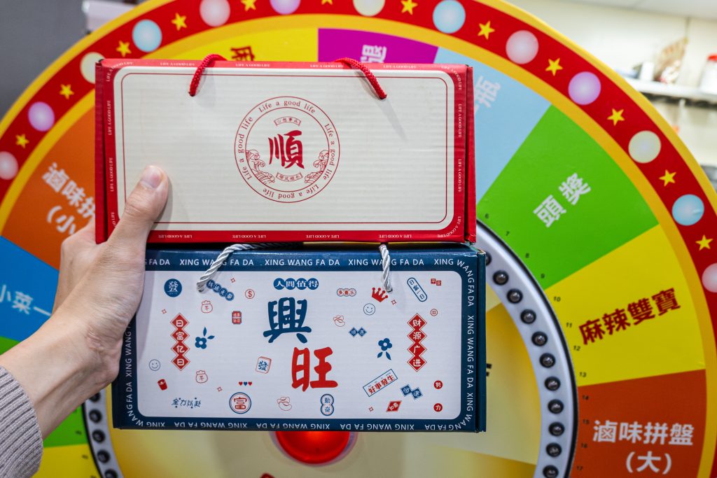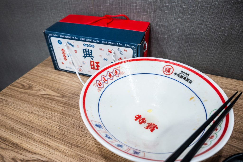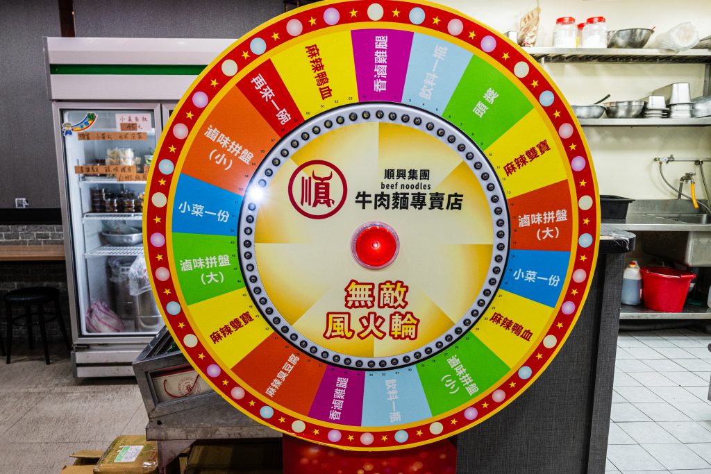 「無限風火輪」極為豐富,內容有再來一碗、滷味拼盤、小菜、麻辣鴨血、飲料…等,其中最大獎就是下圖順興集團牛肉麵專賣店特製的兩款碗筷組。